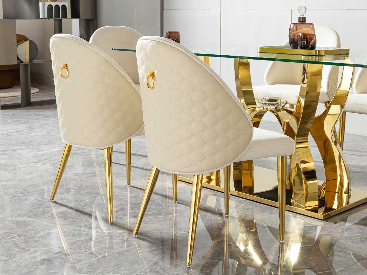 【Soft White Leather Upholstery】These upholstered dining chairs feature smooth white leather—super comfy for long meals and easy to wipe clean. Their sleek look adds a fresh touch to any dining space, blending comfort with style